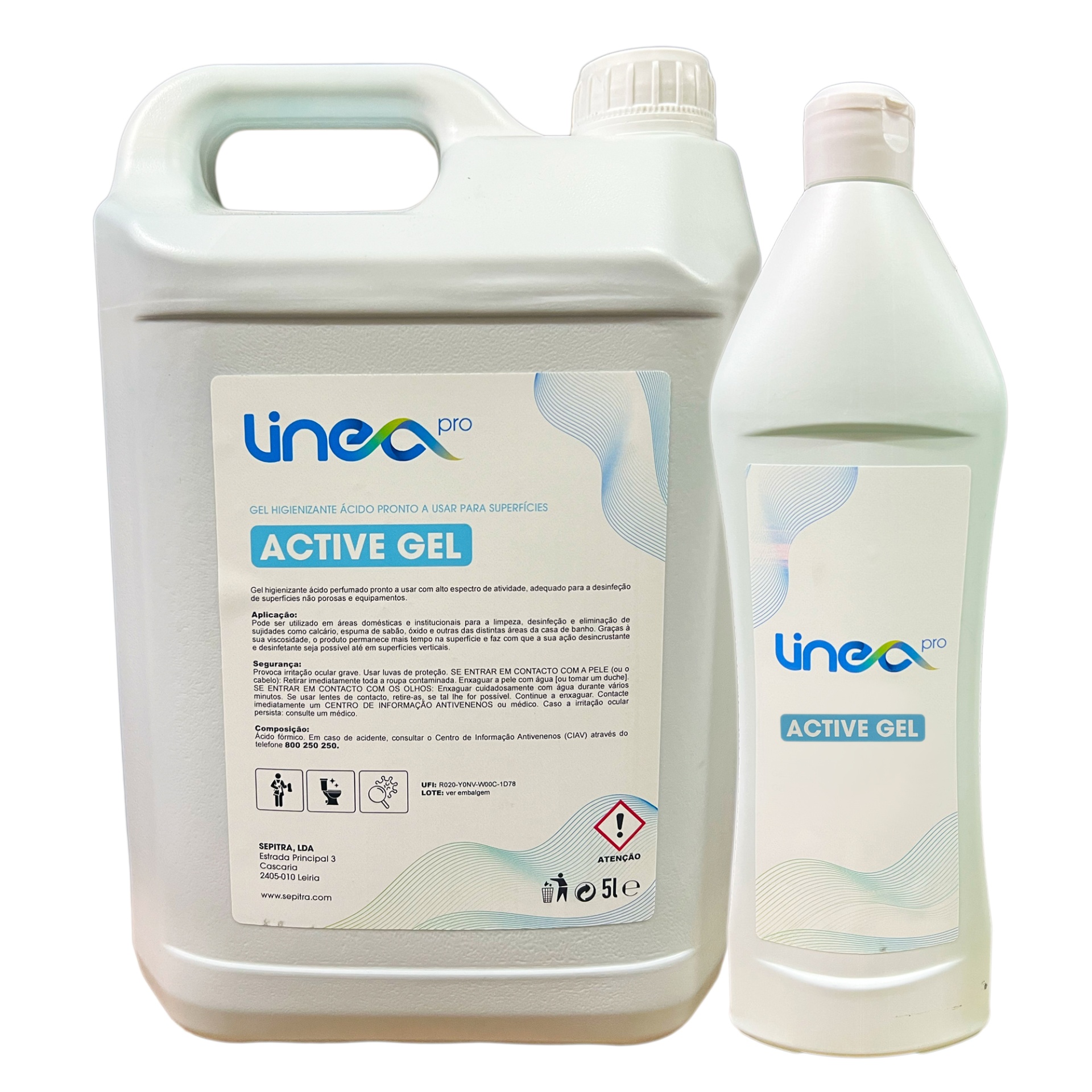 Gel desinfetante, ácido e perfumado, pronto a usar para superfícies sanitárias e em específico nas sanitas e urinóis.