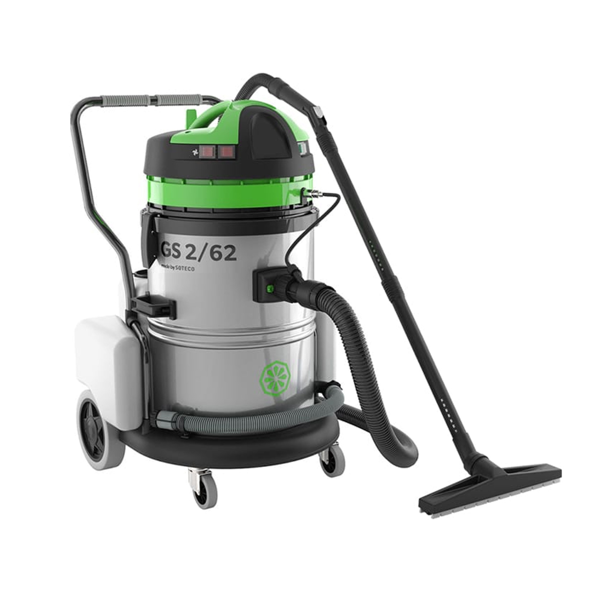 O GS 2/62 EXT GARAGE é um aspirador de injeção-extração profissional com um amplo depósito de 62lt e depósito de detergente externo de 25lt que garante a máxima autonomia em cada operação de injeção e extração.