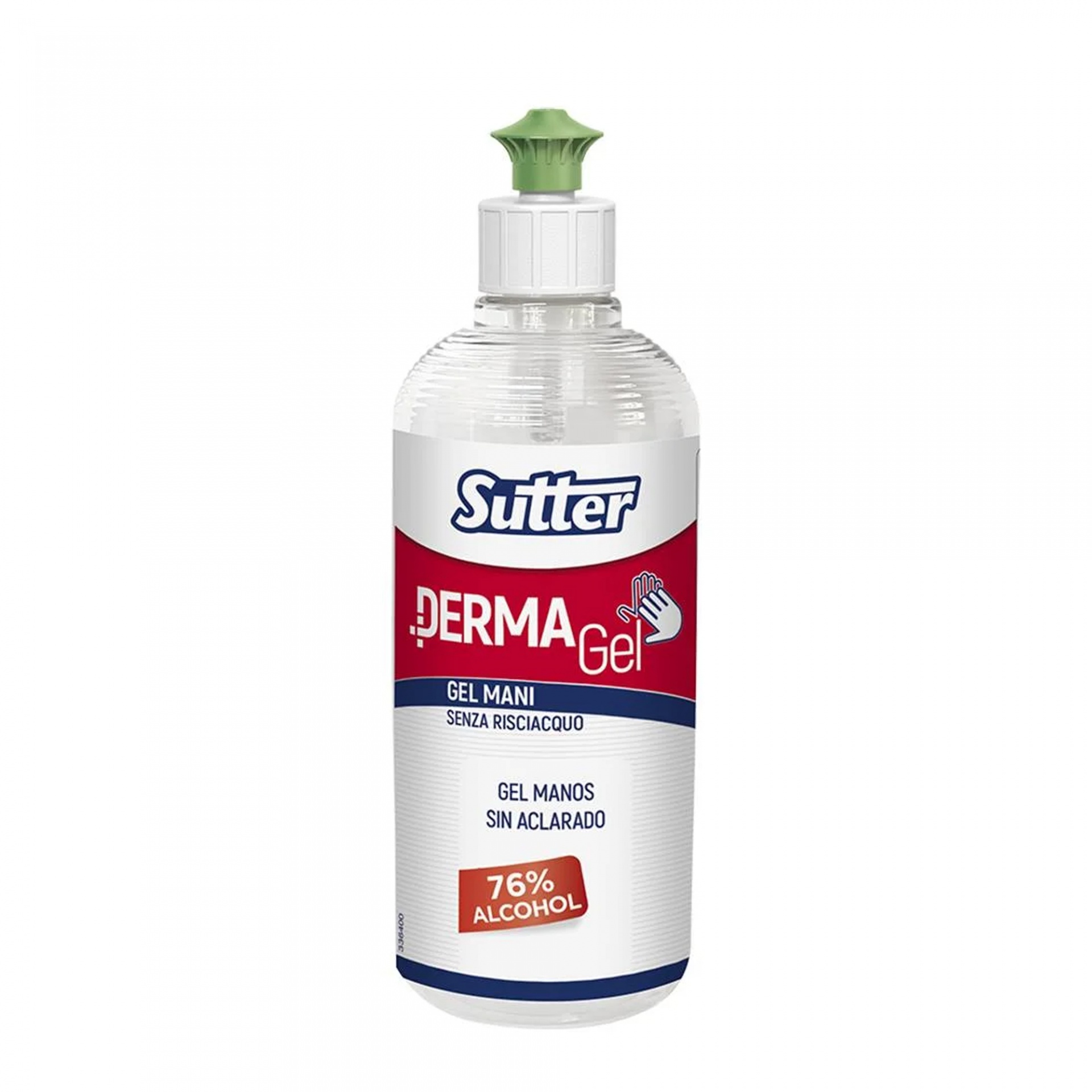 Frasco de gel desinfetante Sutter DERMA Gel com tampa verde