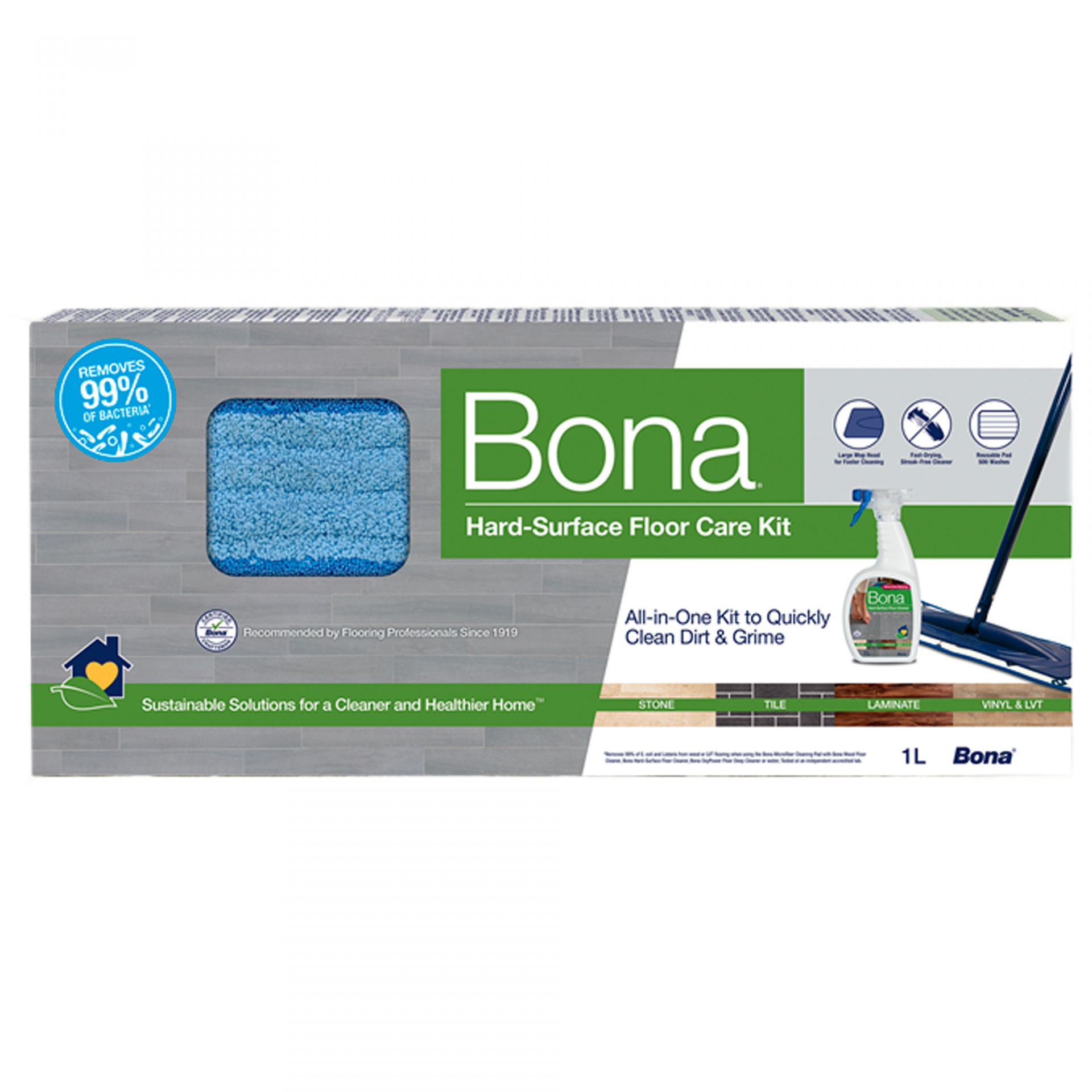 Novo bebé, nova casa ou novos soalhos, Kit Limpeza Superficies Duras Bona é mesmo aquilo de que precisa. O Limpador Pavimentos de 1 litro foi especificamente concebido para remover poeiras e sujidade superficial e incrustada de pavimentos laminados e cerâmicos em segurança. A fórmula pronta a usar seca rapidamente e não deixa resíduos.
