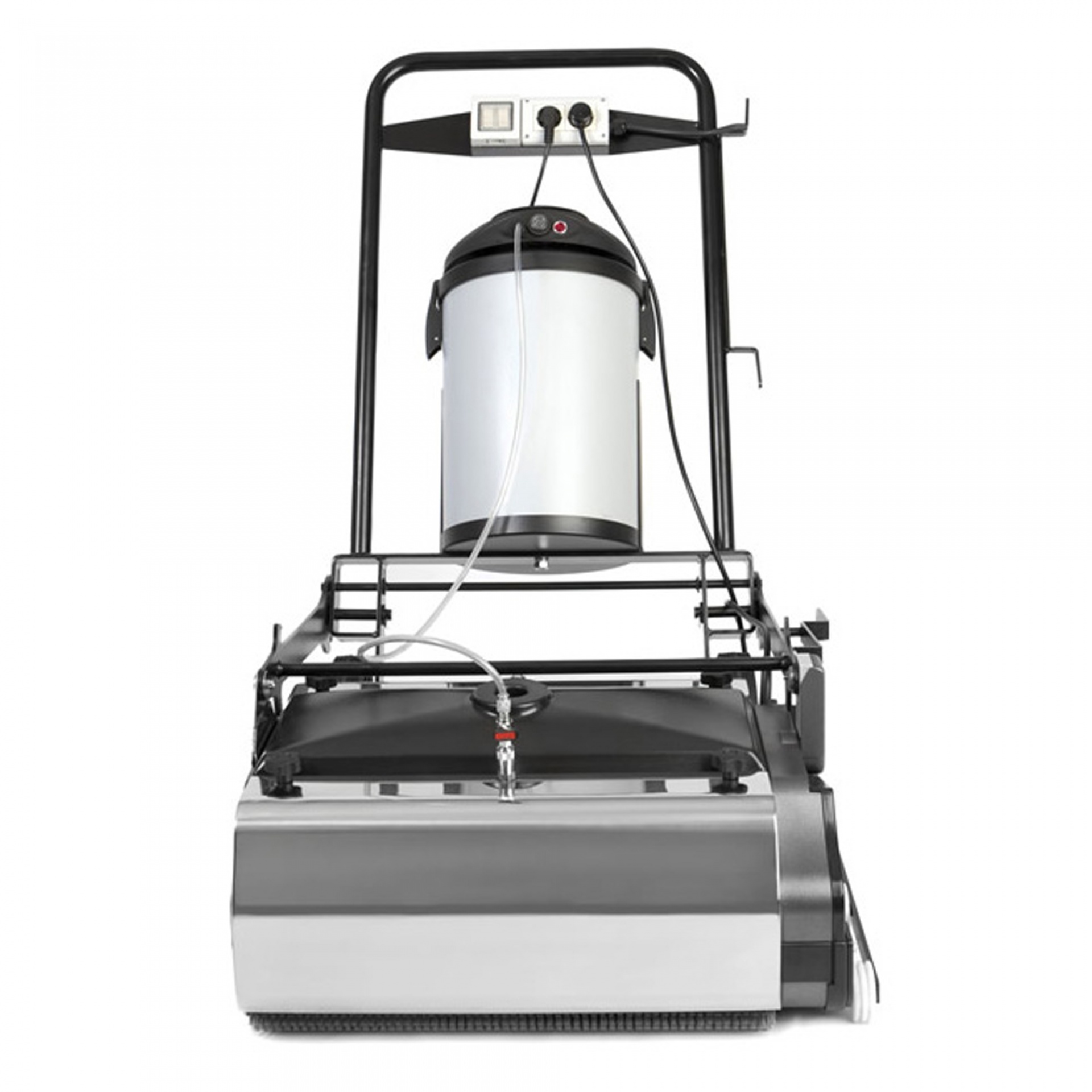 Na função de varrimento, é realizada a filtração a vácuo do pó, onde de seguida, na lavagem húmida, a máquina pulveriza uma camada fina de água e detergente sobre os degraus.