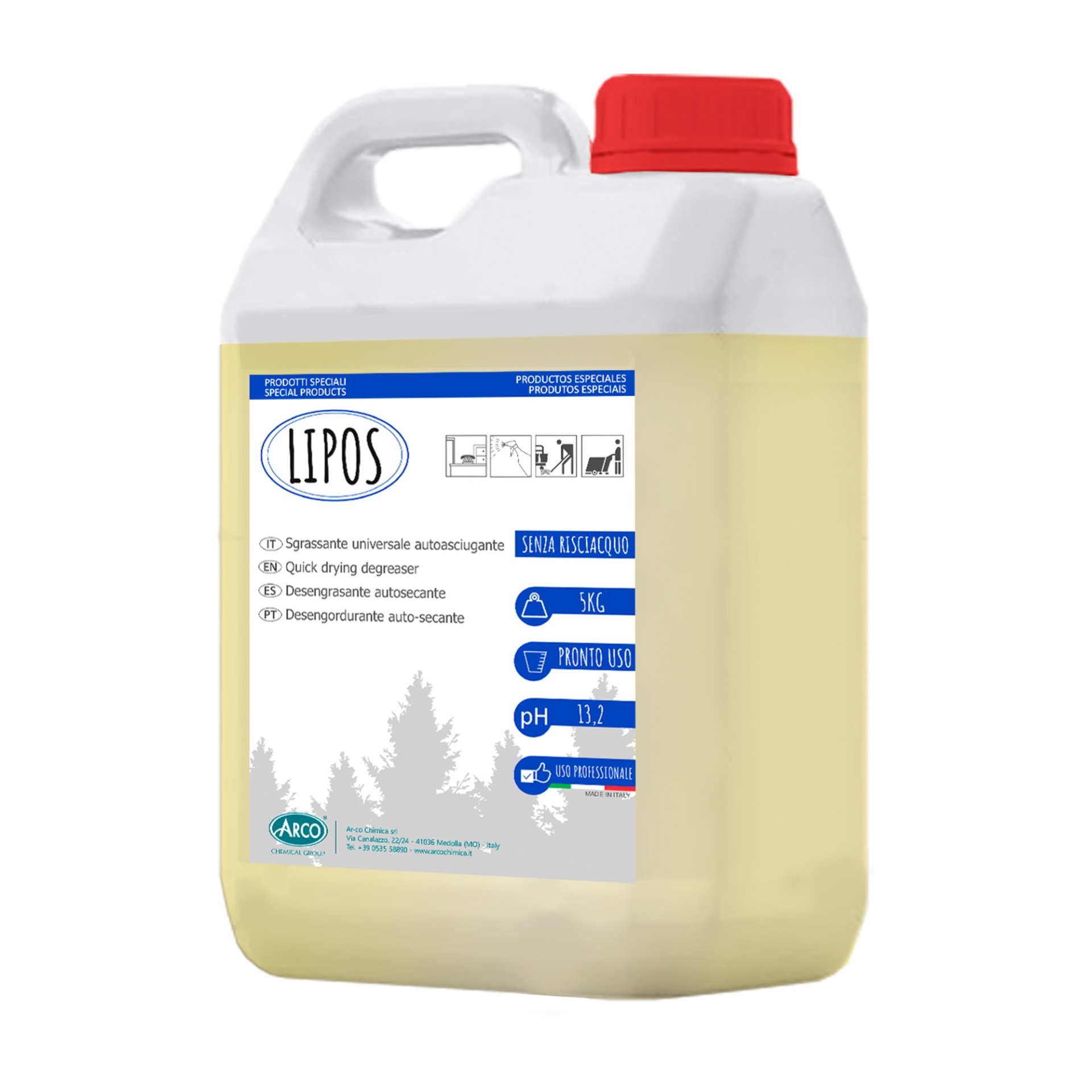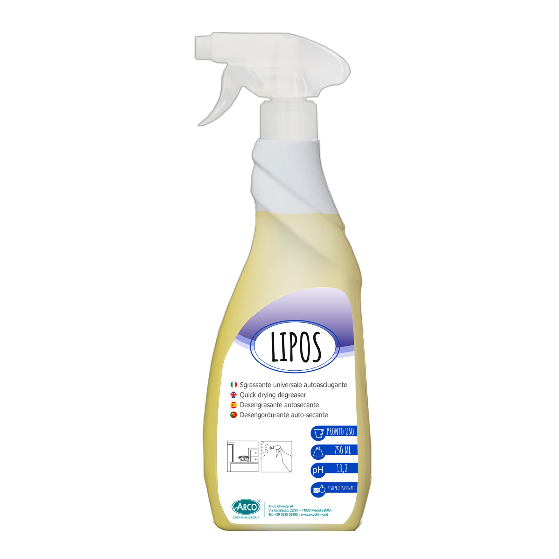 Lipos é um detergente multiusos desengordurante super activo, ideal para resolver os problemas de limpeza de superfícies duras, para os quais os detergentes comuns não proporcionam um resultado satisfatório. Portanto, o produto Lipos é indicado para remover rapidamente manchas de qualquer tipo.