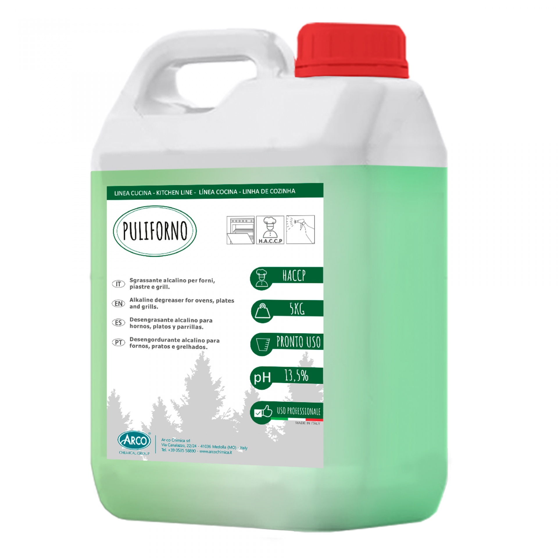 Puliforno Forte é um desengordurante alcalino indicado para fornos, fogões, placas de cozinha etc. que solubiliza rapidamente os depósitos de sujidade gordurosa, mesmo se misturados com incrustações de resíduos de carvão.