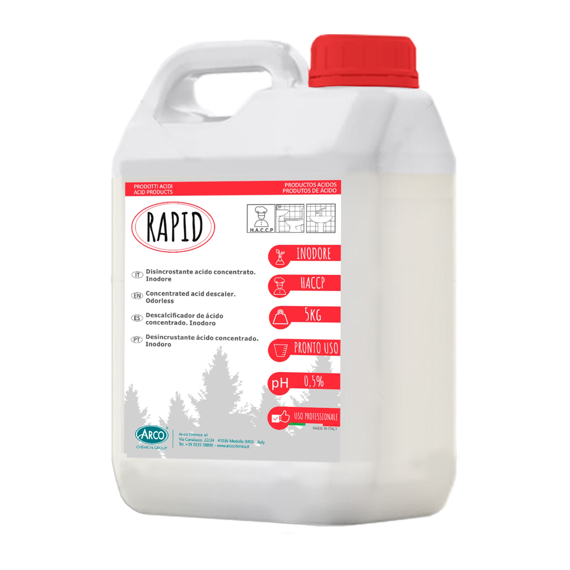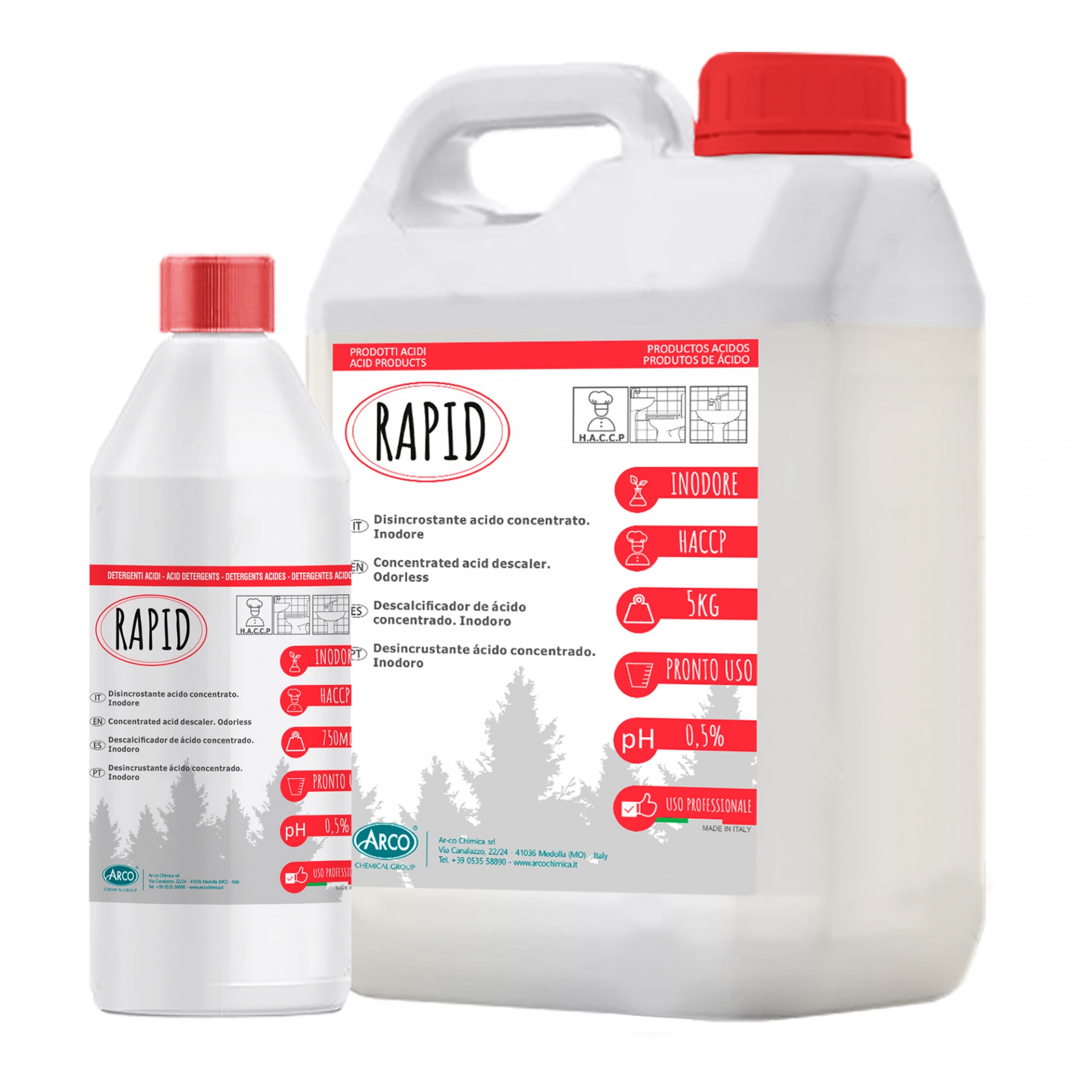 Rapid é um detergente especial à base de ácido fosfórico e outros agentes sequestrantes para a eliminação total da sujidade de tipo calcário-orgânico deixada pela água ou por substâncias alimentares também derivadas do amido.