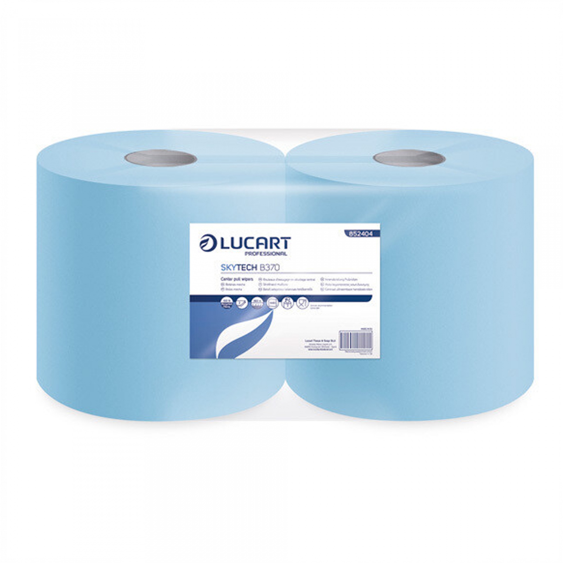 Rolo industrial para limpeza de mãos Lucart SkyTech B370 Azul.