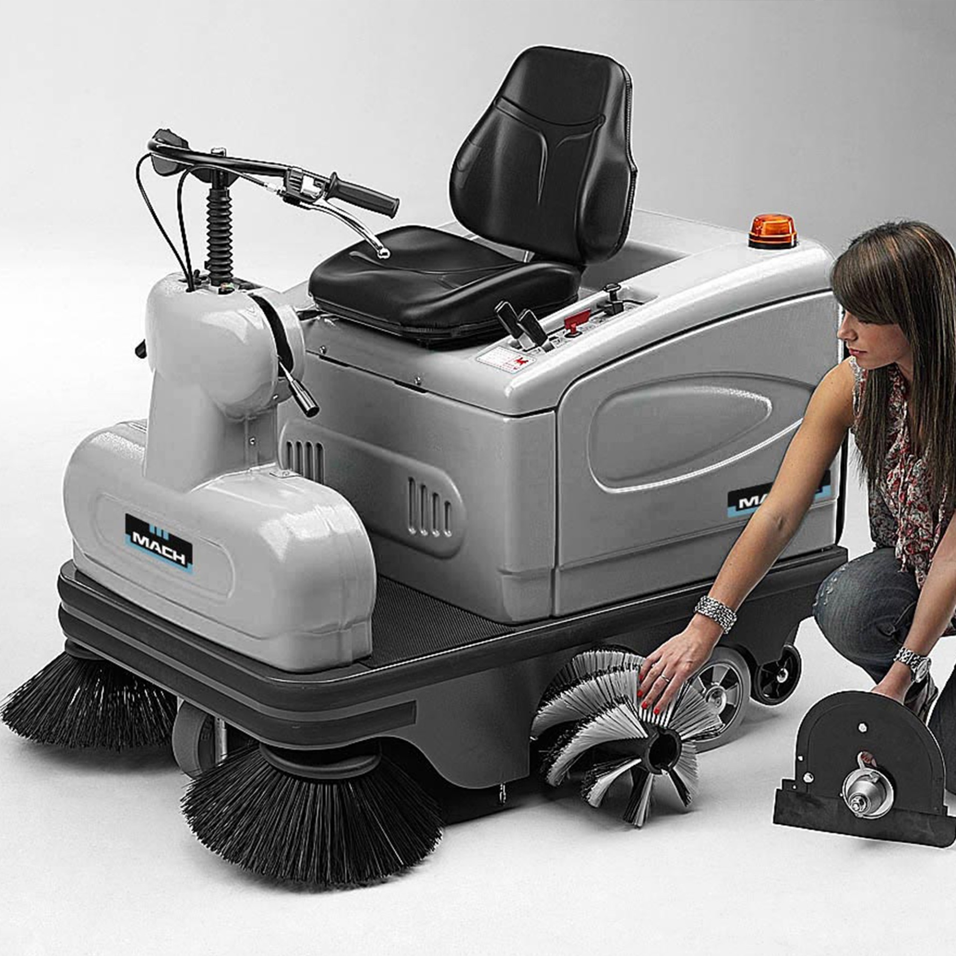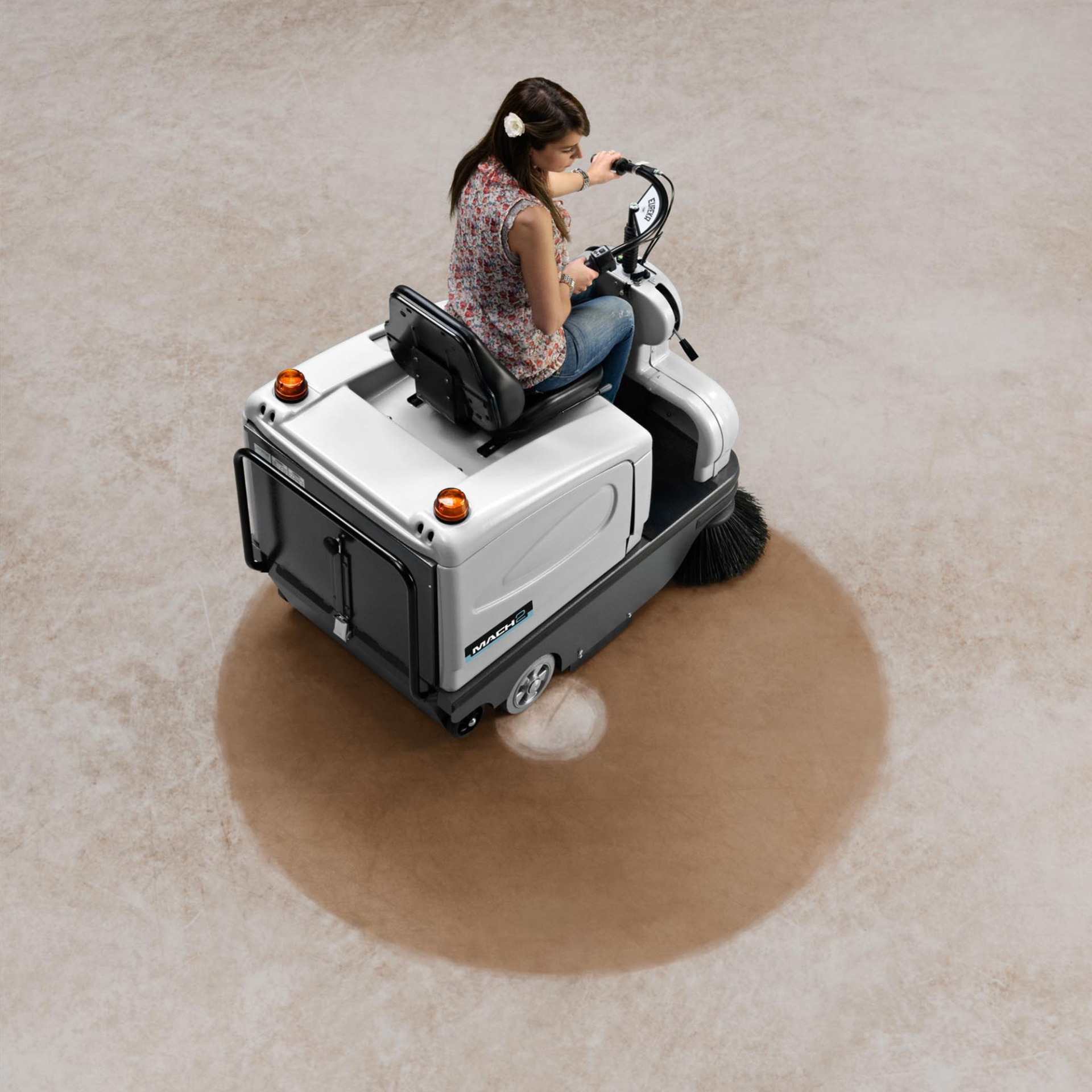 Varredora aspiradora de condutor sentado a bateria, eficiente, fácil de utilizar e de manutenção simples. É ideal para áreas de pequenas, médias e grandes dimensões.