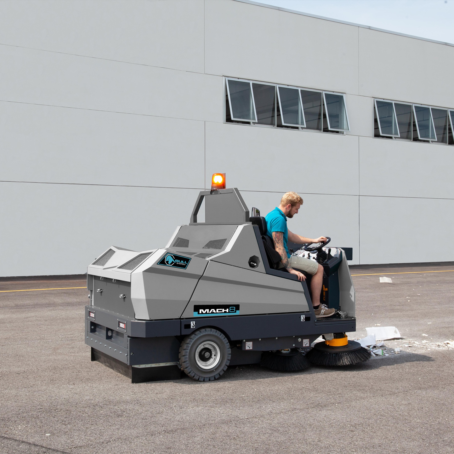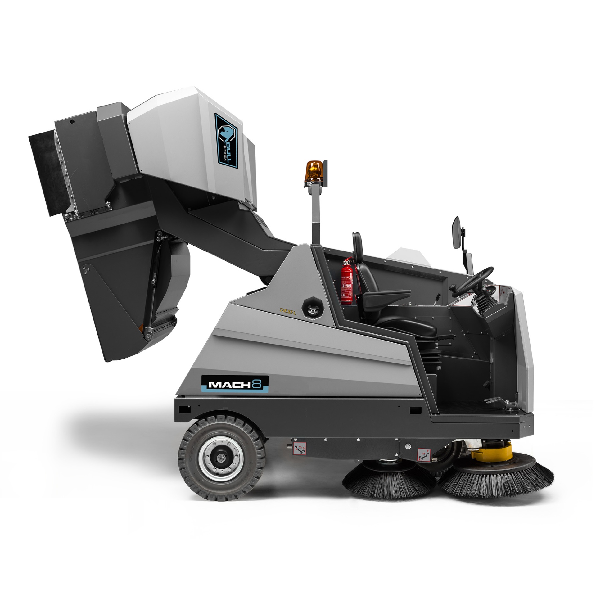 O facto de a Mach 8 poder superar inclinações de 21% sem perder potência, tornam-na adequada para limpar grandes áreas de estacionamento cobertos e descobertos.