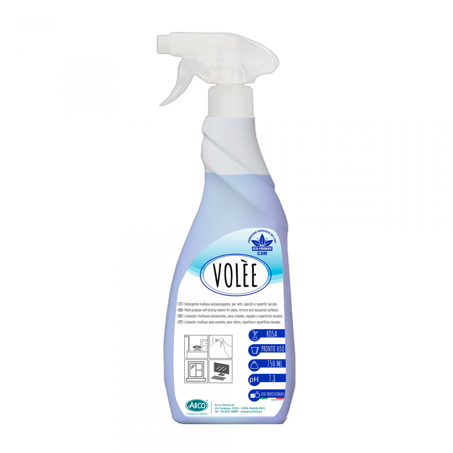 Volèe é um detergente multiusos para a manutenção diária de superfícies como secretárias, carteiras escolares, vidros, espelhos, portas e superfícies laminadas e lacadas.